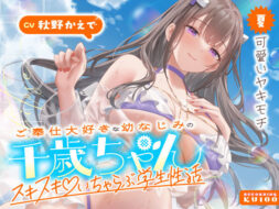 「ご奉仕大好きな幼なじみの千歳ちゃんとスキスキ(はーと)いちゃらぶ学生性活〜夏/可愛いヤキモチ〜」は注目サークル「うこんちゃん☆かんぱにぃ」のエロ作品です。男性向け 成人向け 幼なじみ 巨乳 中出し フェラ パイズリ ASMR 耳舐め KU100 ご奉仕 耳ふー